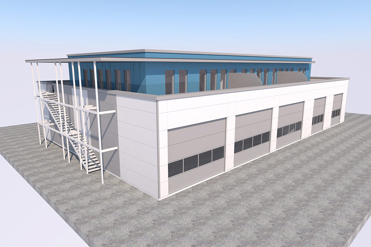 Lager- und Aufbewahrungshalle für Wohnwagen. Büronutzung im Obergeschoss mit bis zu 3 Einheiten.