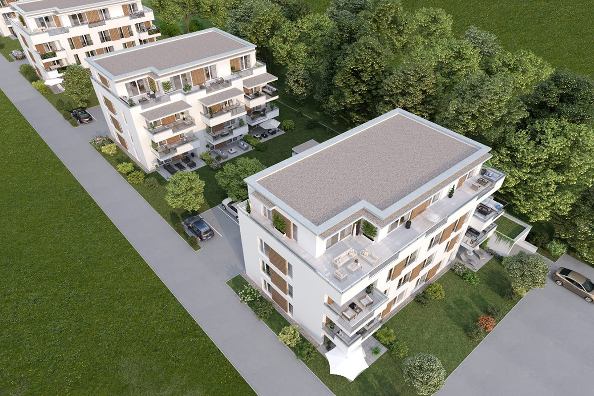 Alle Gärten und Balkone der 60 bis 130m² Wohnungen sind südorientiert